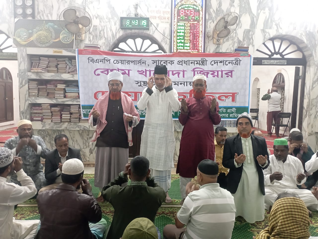 আমানত শাহ (রহঃ) মাজার মসজিদের পেশ ইমাম মাওলানা মোহাম্মদ তবারক আলী’র মোনাজাত পেশে বেগম খালেদা জিয়ার জন্য দ্রুত আরোগ্যে কামনা করা হয়।