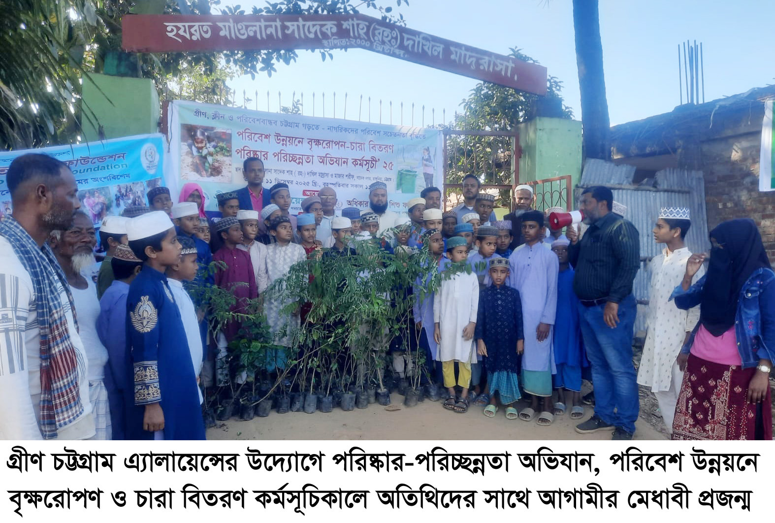 রাঙ্গুনিয়ার সাদেকনগর মাদরাসা ও মাজার কমপ্লেক্সে গ্রীণ চট্টগ্রাম এ্যালায়েন্সের পরিষ্কার-পরিচ্ছন্নতা অভিযান, বৃক্ষরোপণ-চারা বিতরণ কর্মসূচি